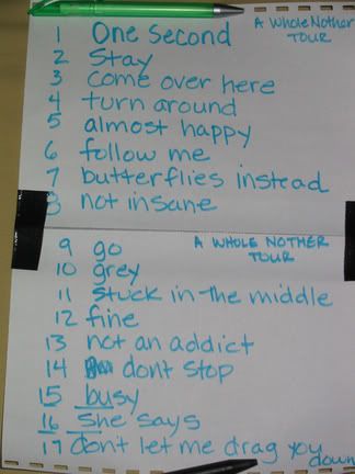 Die Band (inklusive Steph und dem Aushilfsdrummer Pico, der allerdings an diesem Abend nur so mitkam und nicht drum-te) stieg aus und es gab ne echt knuffige Begrüßungszeremonie. Belgische Fans wurden geknuddelt, deutschen Fans wurden die Stand up speak up Armbänder abgeschwatzt *gg*